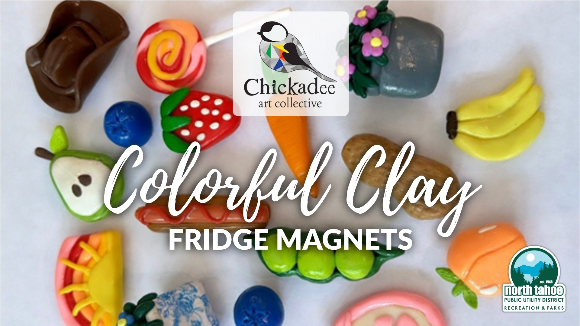 Hosted in partnership with artist Nicole Stirling, owner of Chickadee Art Collective in Kings Beach, design and create a set of clay magnets from start to finish. Perfect for beginners, families, or anyone looking for a relaxing creative project. Come play with clay and make something fun and functional!